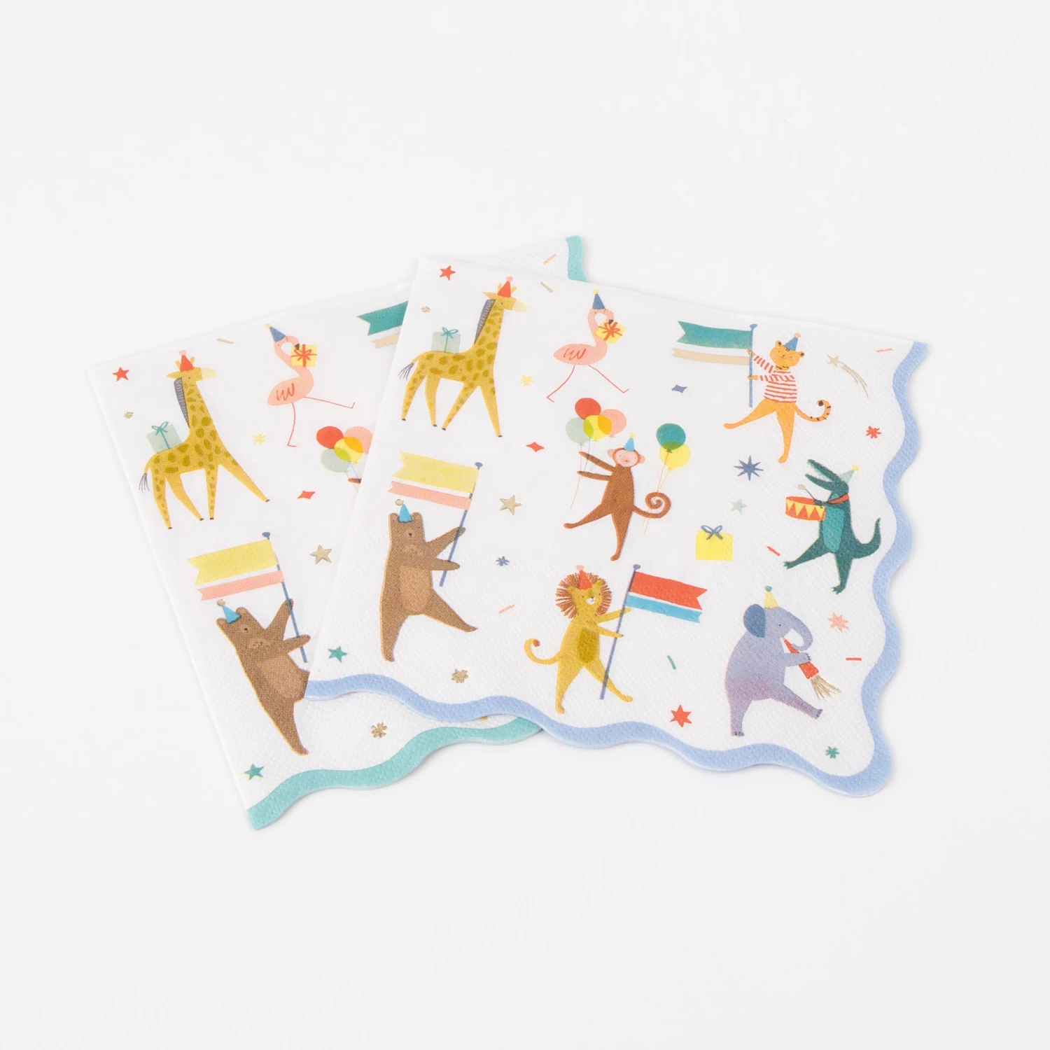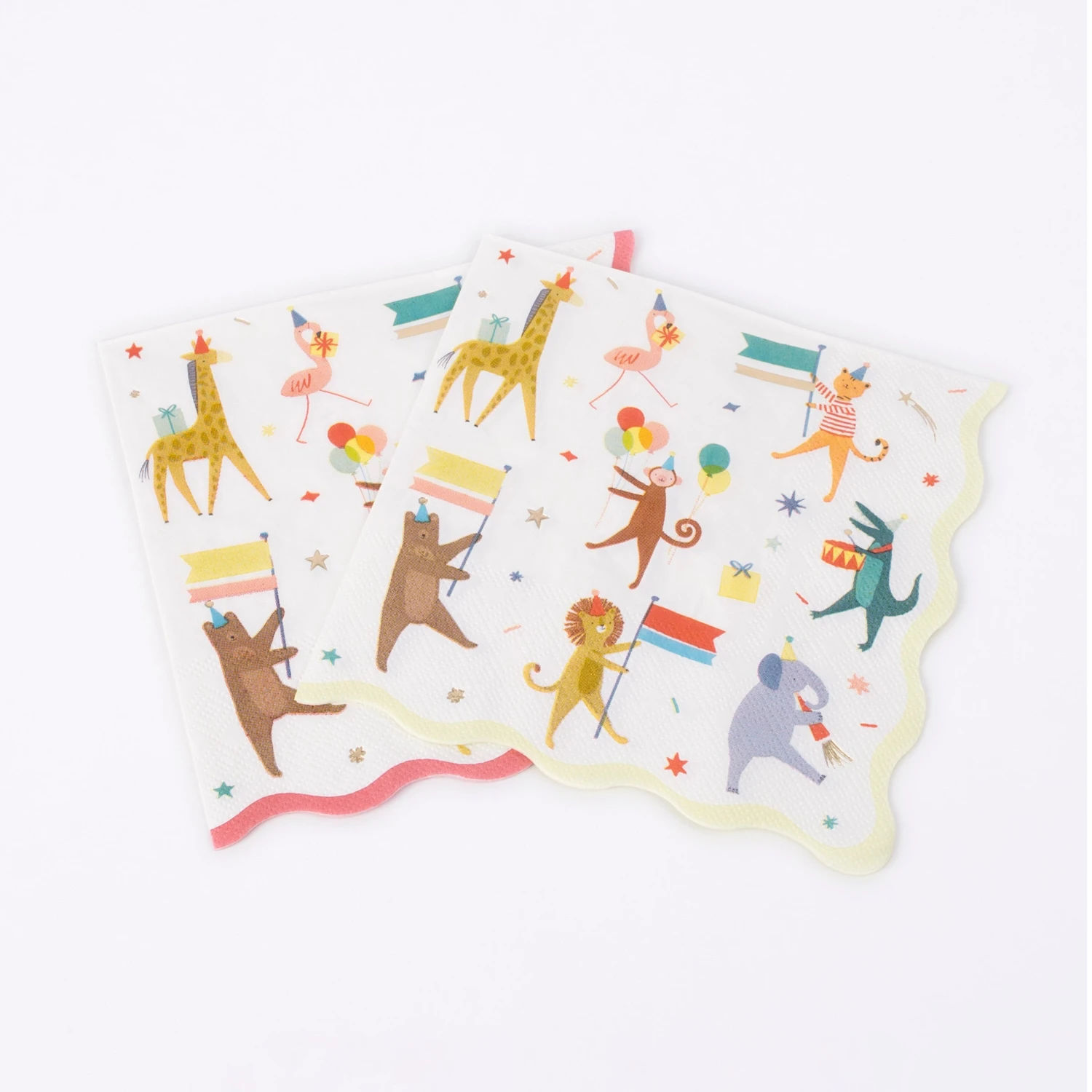 Meri-Meri Animal Parade Large Napkins (x 16)