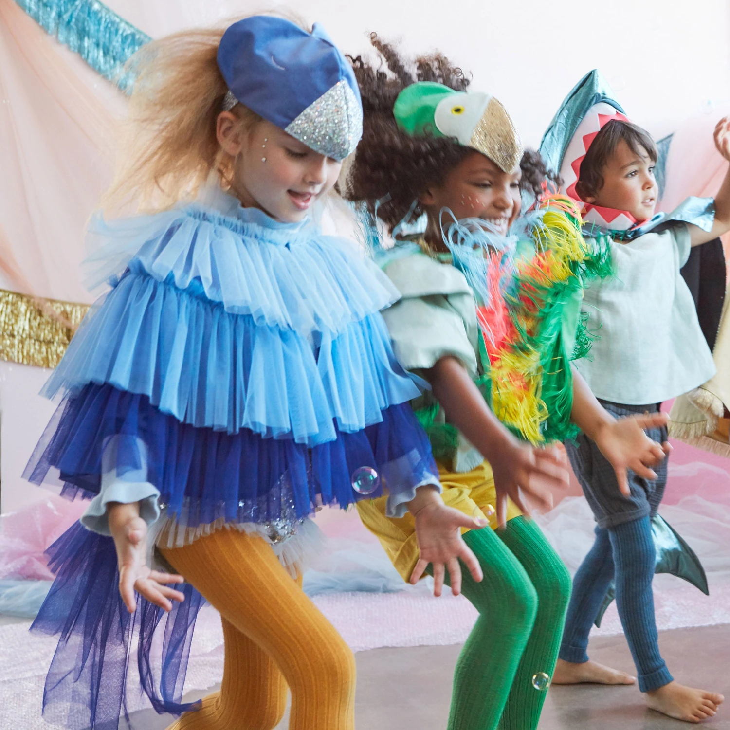 If you’ve got a little one who loves to pretend to fly, then this bird dress up set will be a much-adored addition to their dress-up box! It contains beautifully crafted blue wings and a tail, both made from ruffled tulle. The headpiece is made from blue velvet, with stitched silver eyes and a glittery beak.