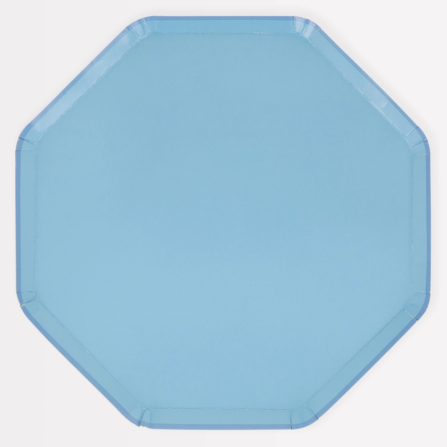 The octagonal shape of these plates, teamed with a soft blue color on the front and back, makes them a striking choice for your party or special dinner. They’re perfect for a baby shower, birthday party or any celebration where you want a calming color palette. The plates are part of our stylish new take on mix and match tableware.