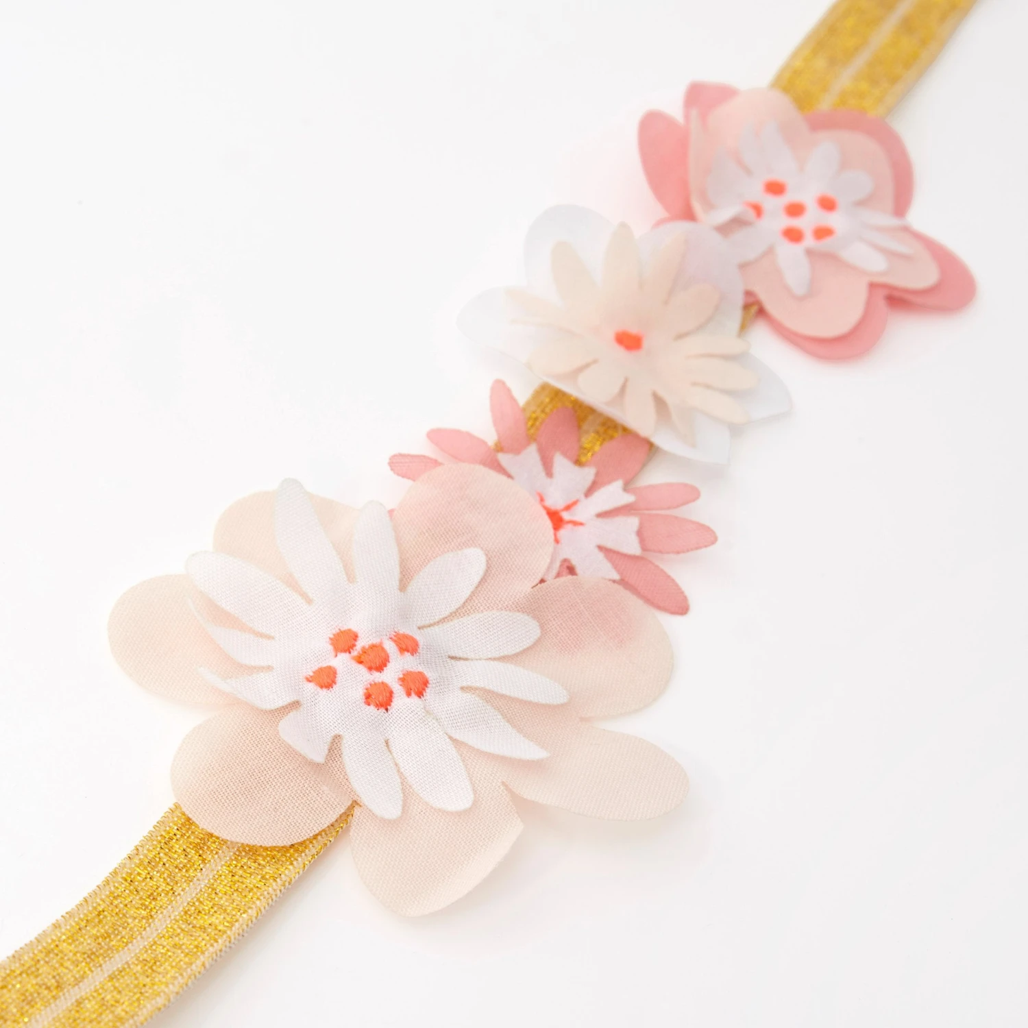 No dress-up box is complete without a set of wings, and these are sure to delight any little fairy! Made from beautiful peach cotton and featuring elegant stitched details. These wings are attached with gold elastic arm straps, making them perfect for any adventure. As a finishing touch, this dress-up set also comes with a brilliant flower headband and a drawstring storage bag.