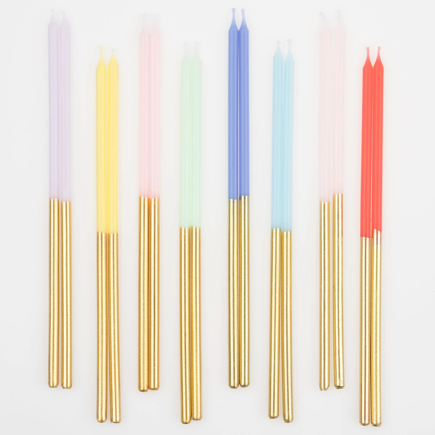 Meri-Meri Gold Dipped Rainbow Mix Candles (x 16)