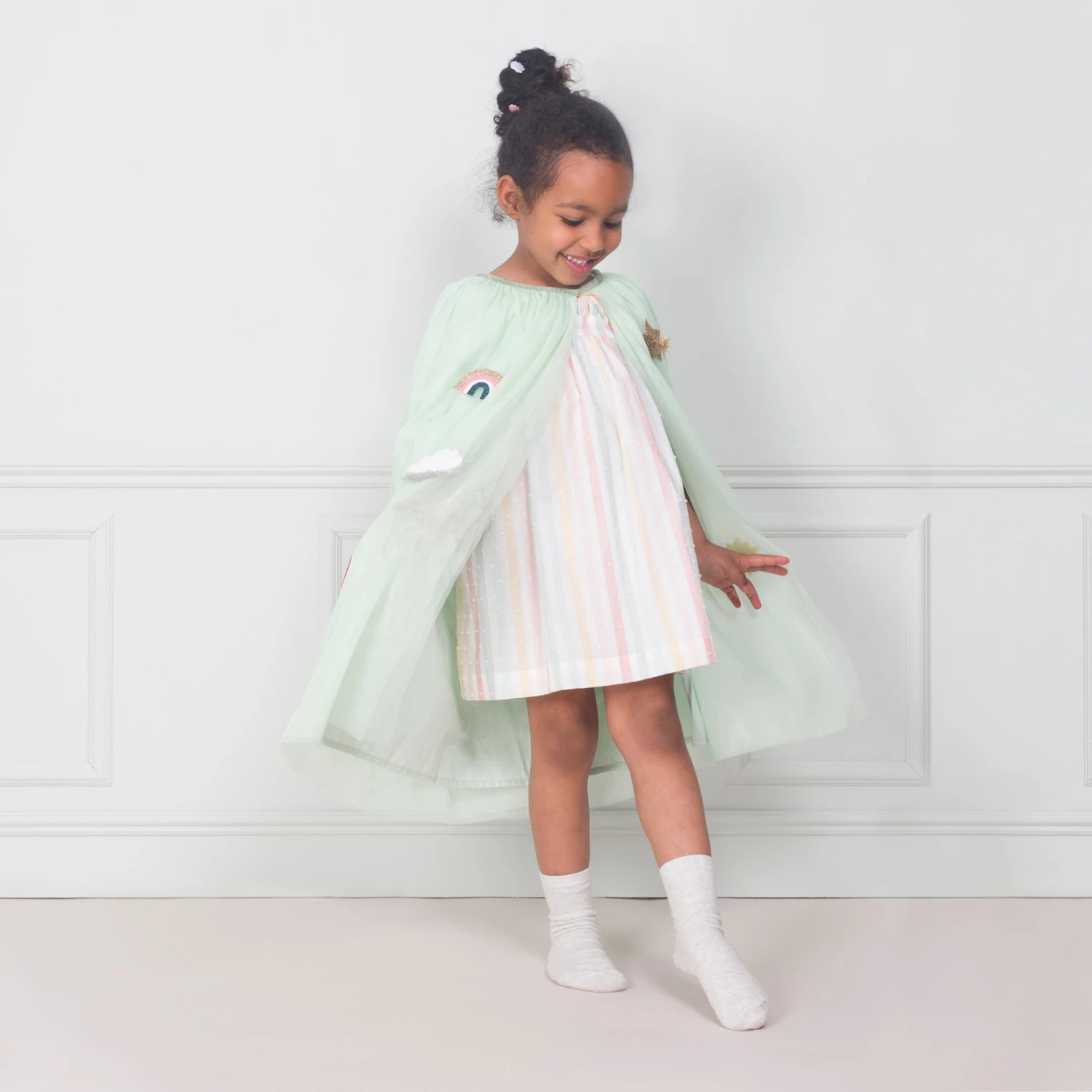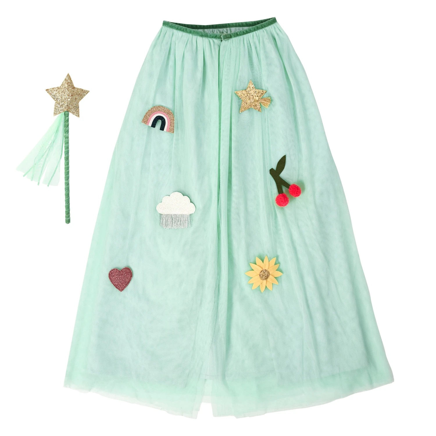 This beautiful tulle cape, with matching wand, is guaranteed to make any outfit look party ready, or is perfect for imaginative play. It features amazing icons including rainbows, cherries, butterflies, ice-cream, flowers, stars and clouds.
