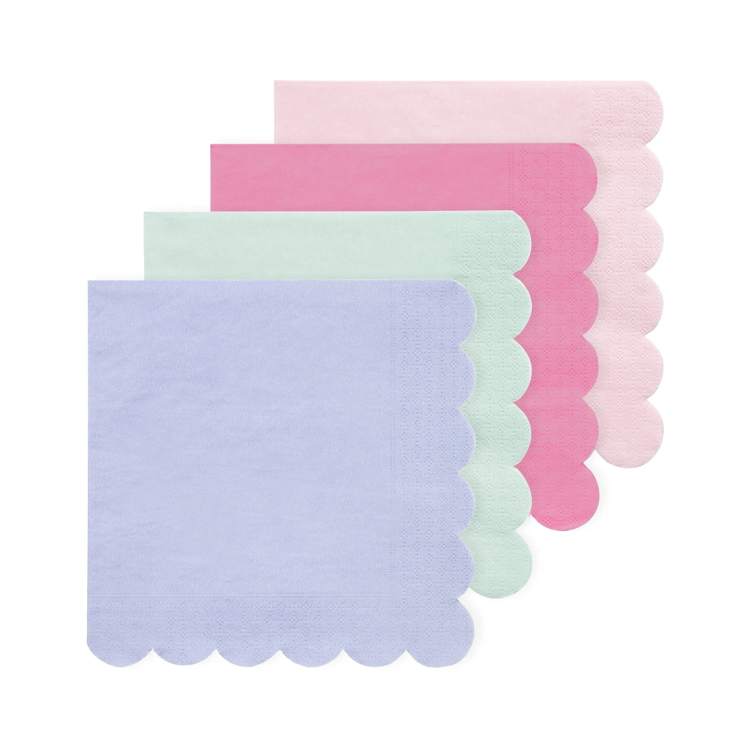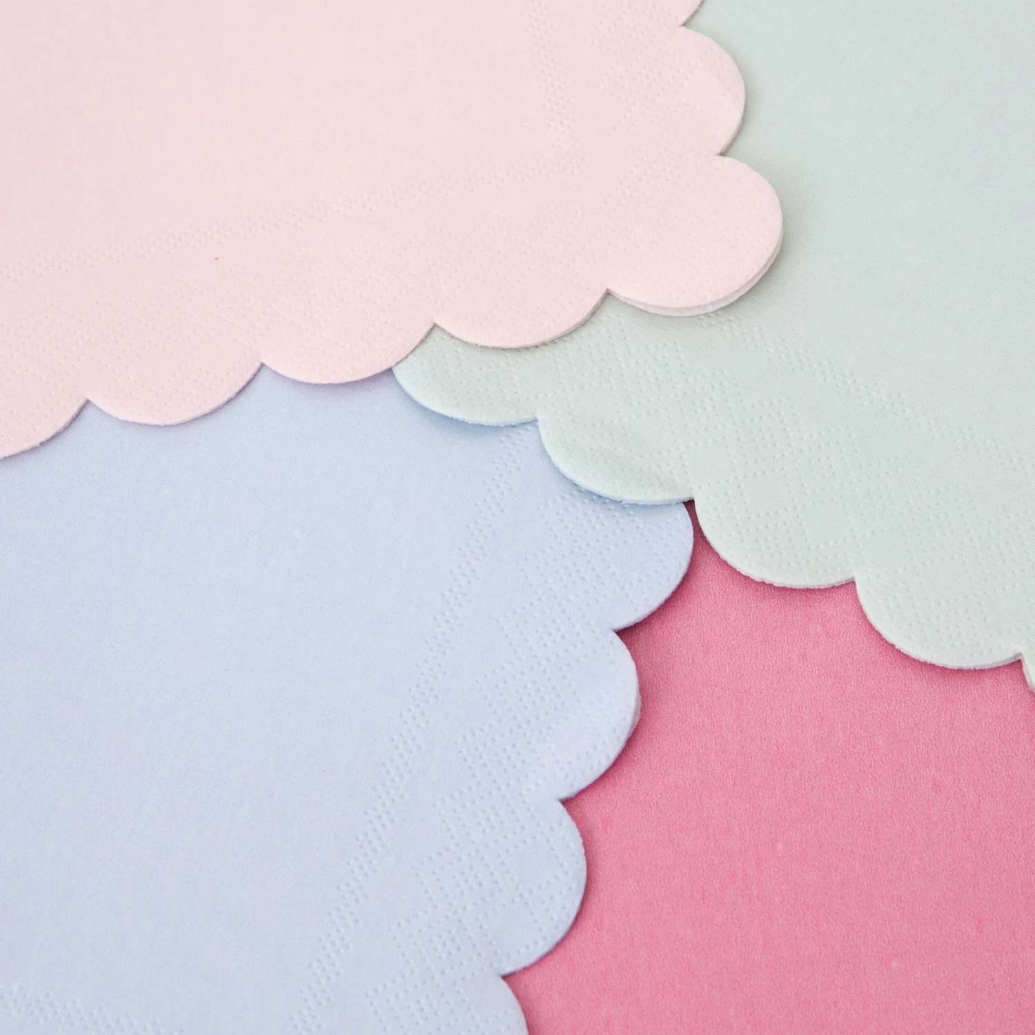 These beautiful napkins are made to match our compostable bamboo plates. They come in a range of pastel colors and are finished with stylish, scallop borders.