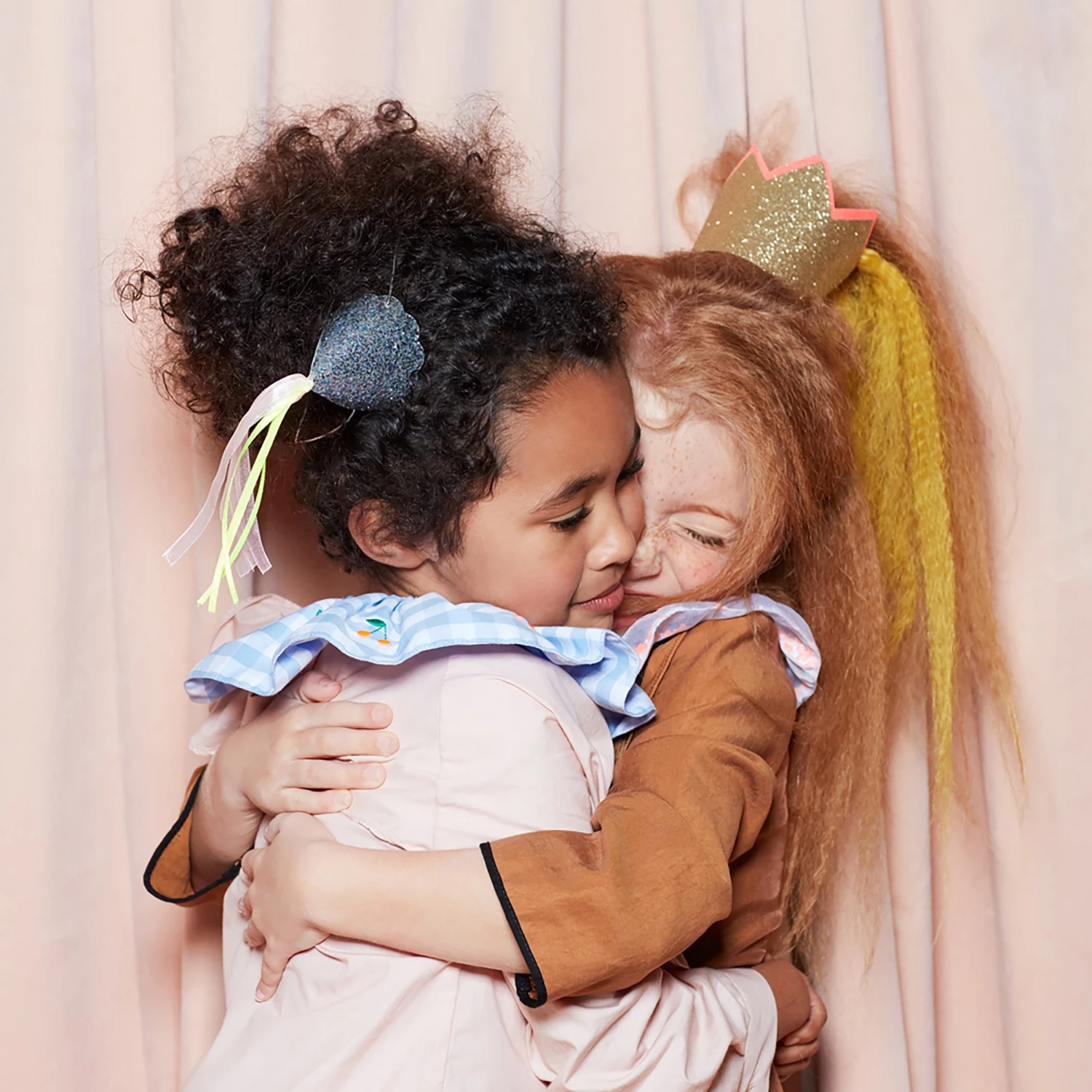 Even if your guests aren’t actually royalty, make sure they feel the love with this excellent twist on a traditional party hat! These stunning crowns will add a little bit of golden shimmer to your celebration, made from gold glitter fabric and finished with a neon coral tie.