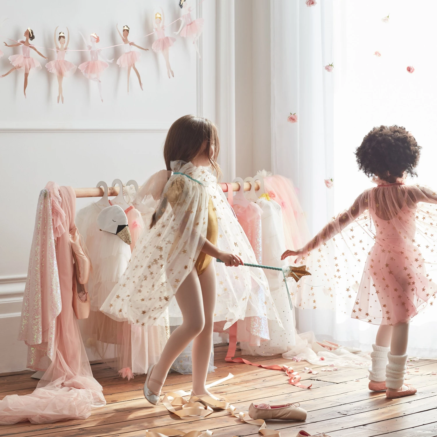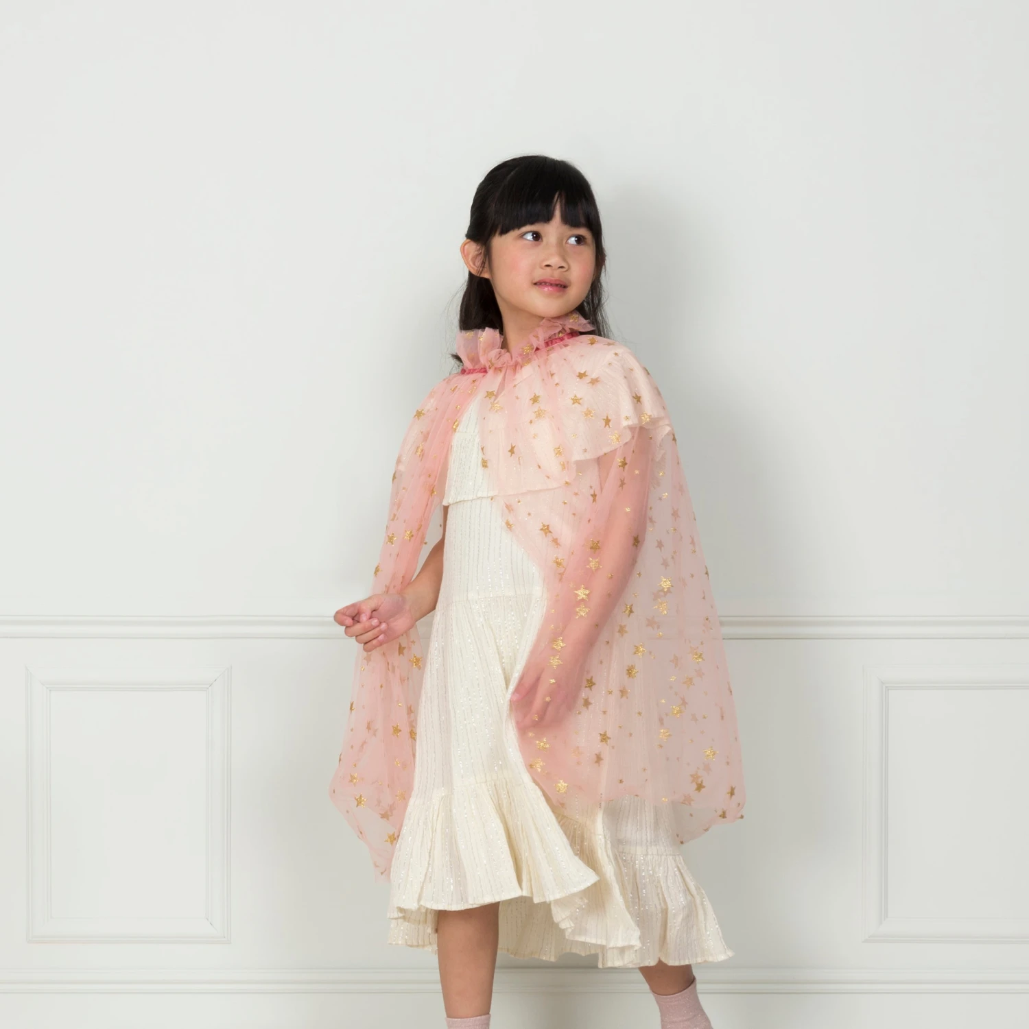 This wonderful pink cape will look amazing for princess parties or imaginative play. It is crafted from soft tulle with gorgeous gold glitter stars for a sparkling effect.