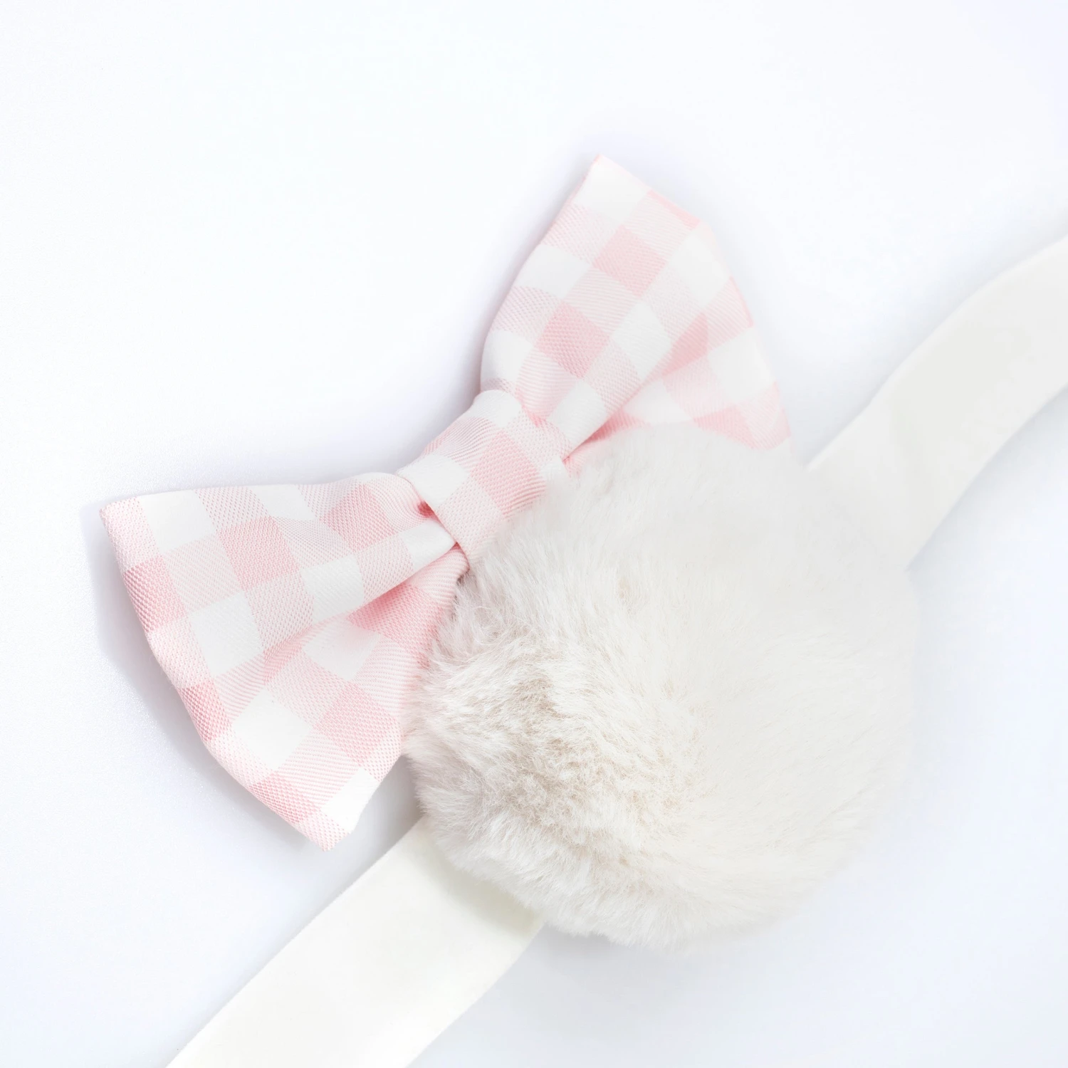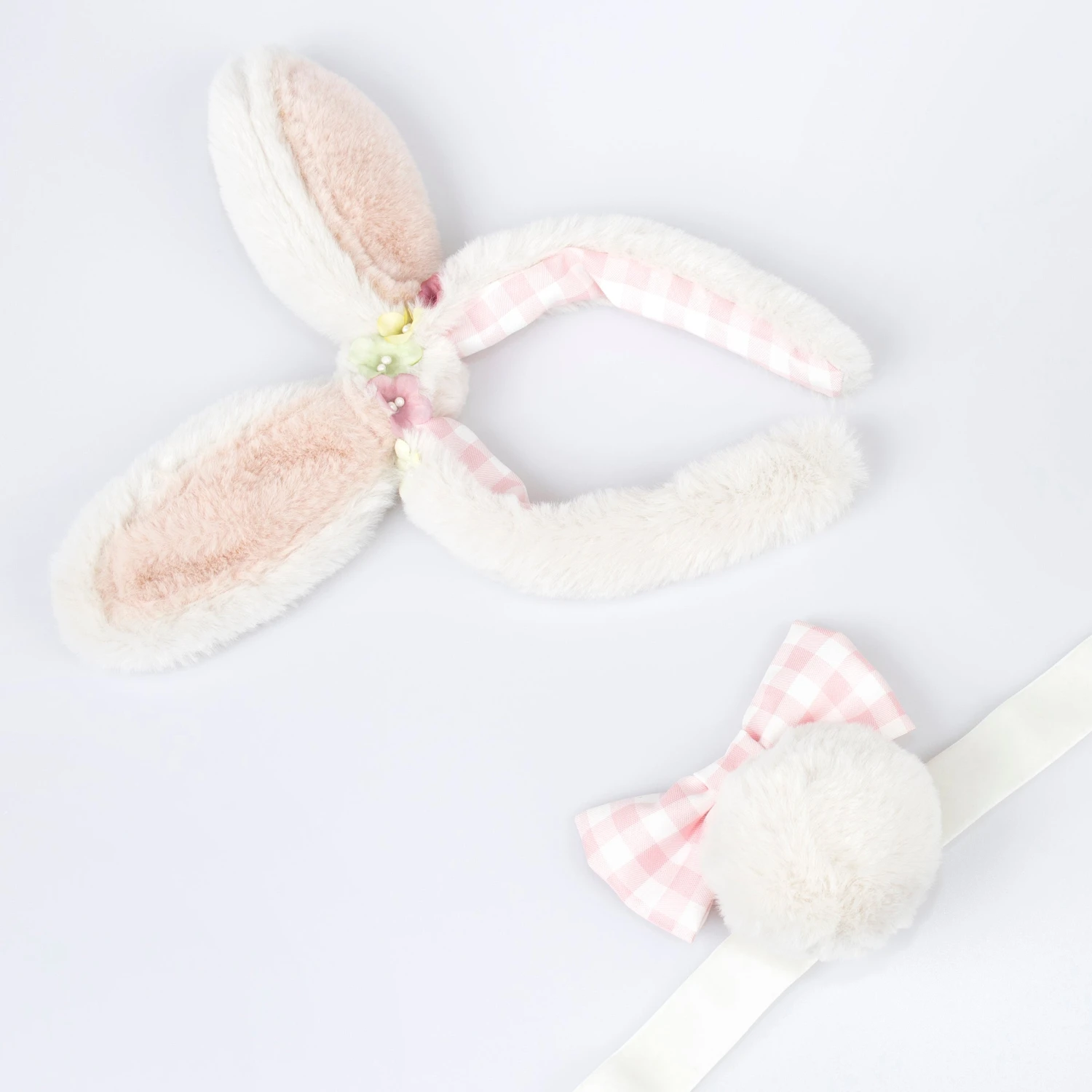 A luxurious dressing up set for little bunnies. It’s crafted from the softest plush fabric, a delight to touch and wear. The beautiful fabric flowers, on-trend bow embellishment and the pink gingham bag the set is presented in, all add up to give this gift the wow-factor! It’s perfect for Easter or anytime of the year.