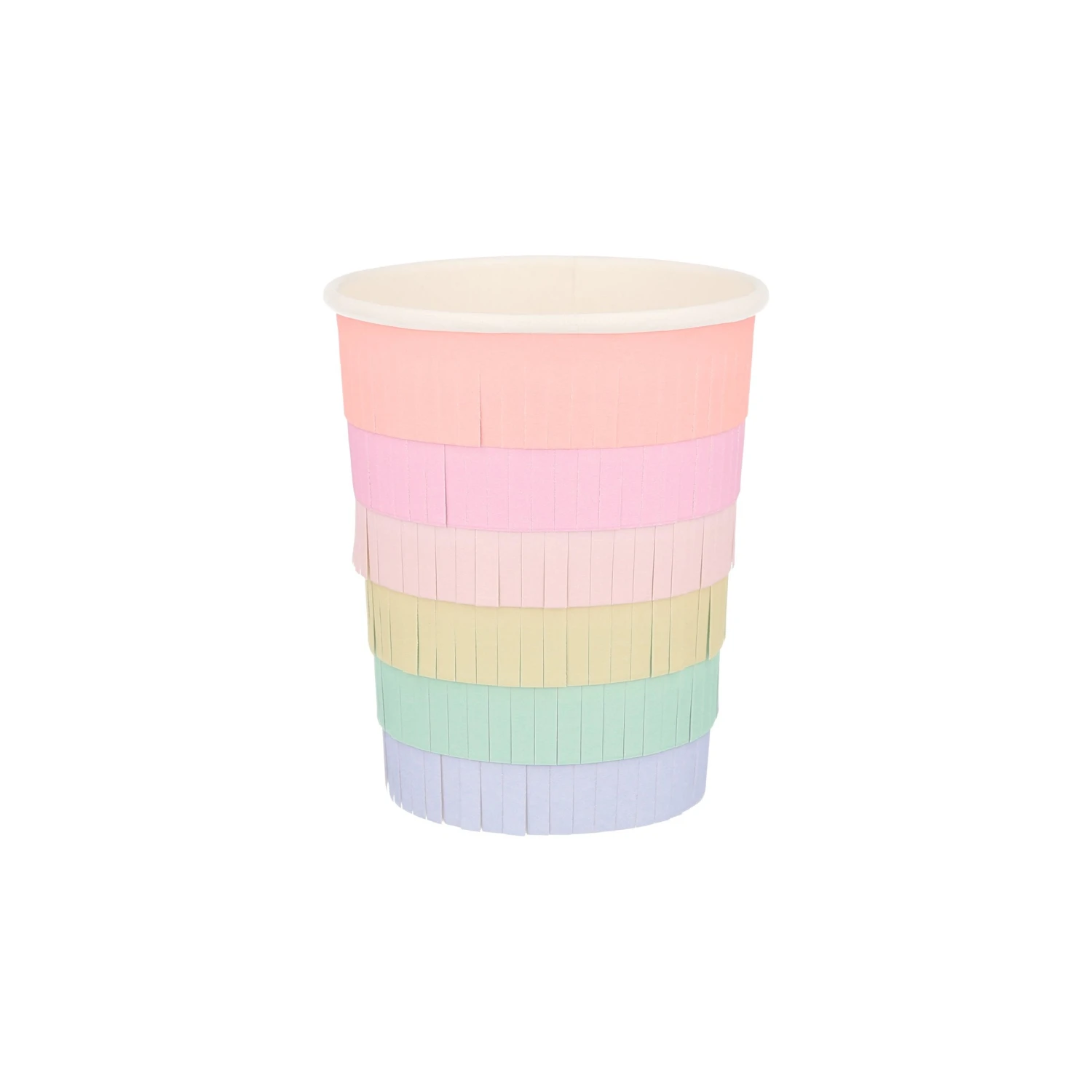 Why serve drinks in plain cups, when you can use sensational ones like these to delight your guests? They are crafted with colorful fringing for a really cheerful party look.