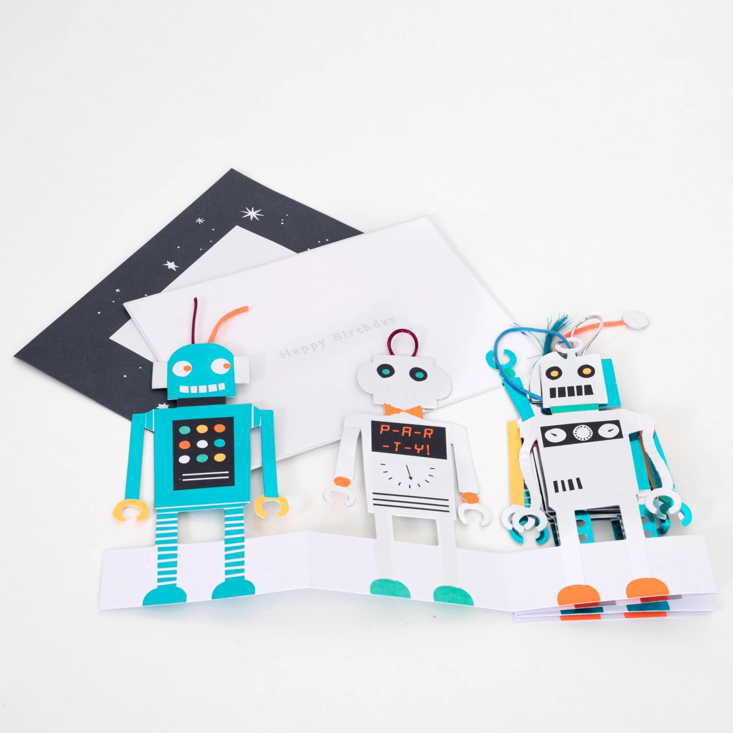 This fabulous robot card opens up to reveal six shiny robots. They all feature sensational embellishments, making this a delightful decoration to display not just for the special day but all year.