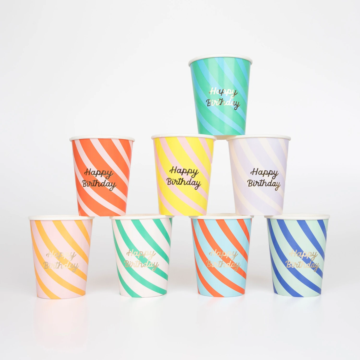 Meri-Meri Stripe Happy Birthday Cups (x 8)