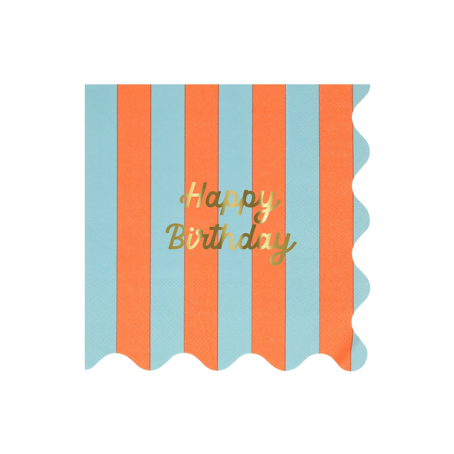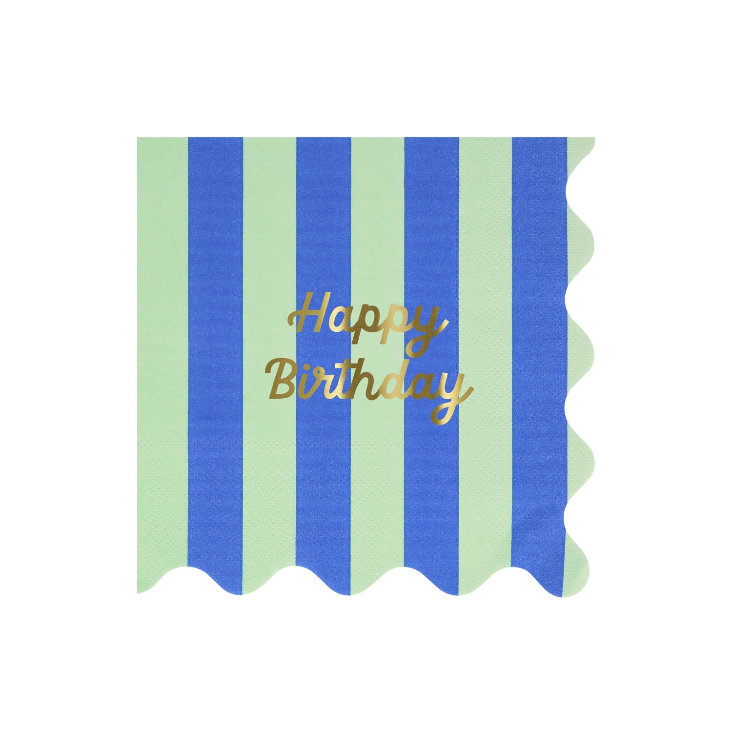 Meri-Meri Stripe Happy Birthday Large Napkins (x 16)